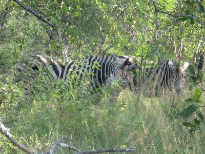 From the eating area, we took a short walk up the river to see the "sleeping" hippos from the bank (see photos.) We learned that they are at home in the water and actually sleep under water. They are herbivores, so the accidents with humans that do happen are often from them returning from grazing to the water source and a human happens to be in the way. The human panics, runs, and they are chomped. Interesting sounds.